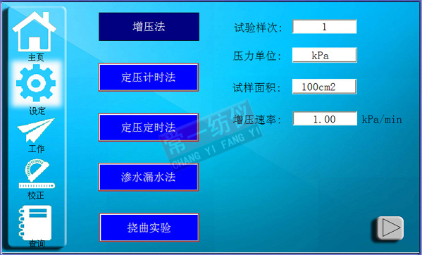 5、五種測試模式可選,增壓法,定壓計時法,定壓定時法,擾曲松弛及滲水漏水法。內(nèi)置新國標測試方法有自動評級功能。