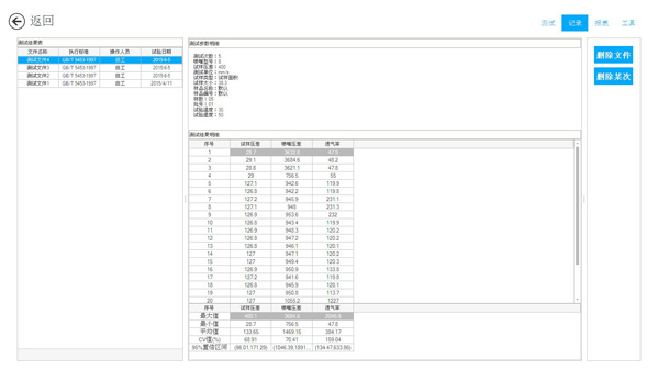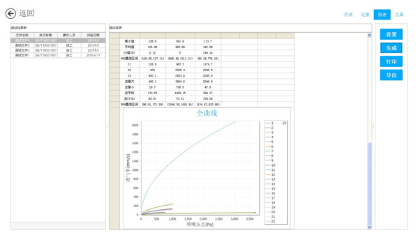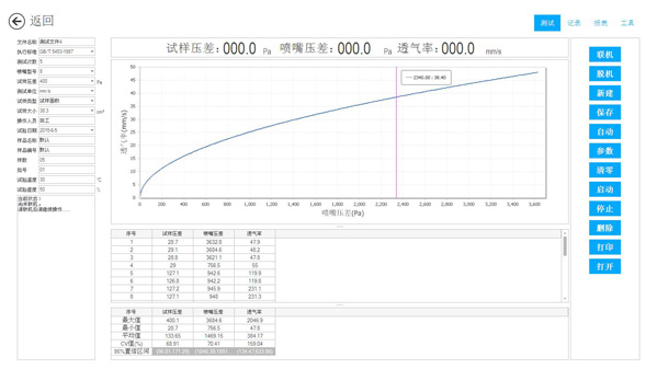 3、內置7種測試單位mm/s、m3/m2.min、cm3/cm2.s、m3/m2.h、cfm、L/dm2.min、L/m2.s,